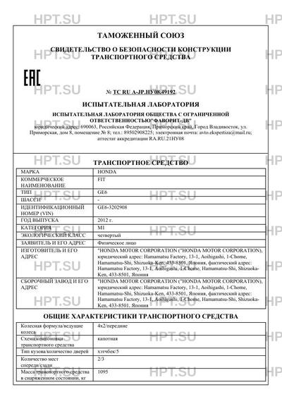 | Предприятие-изготовитель | "HONDA MOTOR CORPORATION ("HONDA MOTOR CORPORATION), юридический адрес: Hamamatsu Factory, 13-1, Aoihigashi, 1-Chome, Hamamatsu-Shi, Shizuoka-Ken, 433-8501, Япония, фактический адрес: Hamamatsu Factory, 13-1, Aoihigashi, 1-Chome, Hamamatsu-Shi, Shizuoka- Ken, 433-8501, Япония |