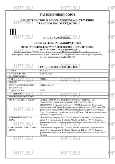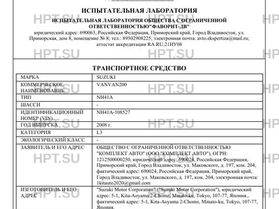 | Предприятие-изготовитель | "Suzuki Motor Corporation" ("Suzuki Motor Corporation"), юридический адрес: 5-1, Kita-Aoyama 2-Chome, Minato-ku, Tokyo, 107-77, Япония., фактический адрес: 5-1, Kita-Aoyama 2-Chome, Minato-ku, Tokyo, 107-77, Япония. |