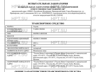 | Коммерческое наименование | YARIS CROSS |