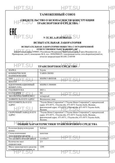 Полное СБКТС ТС RU A-JP.НУ08.63223