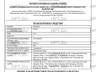 | Предприятие-изготовитель | "Nissan Motor Co., Ltd." ("Nissan Motor Co., Ltd."), юридический адрес: Oppama Plant, 1 Natsushima-cho, Yokosuka-shi, Kanagawa, Япония, фактический адрес: Oppama Plant, 1 Natsushima-cho, Yokosuka-shi, Kanagawa, Япония |