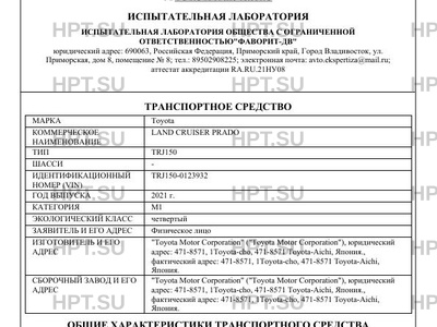 | Предприятие-изготовитель | "Toyota Motor Corporation" ("Toyota Motor Corporation"), юридический адрес: 471-8571, 1Toyota-cho, 471-8571 Toyota-Aichi, Япония., фактический адрес: 471-8571, 1Toyota-cho, 471-8571 Toyota-Aichi, Япония. |