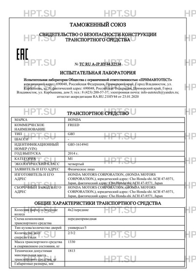 Предприятие-изготовитель HONDA MOTORS CORPORATION, (HONDA MOTORS CORPORATION,), юридический адрес: Cho Honda-shi ACH 47-8571, Japan, фактический адрес: Cho Honda-shi ACH 47-8571, Japan