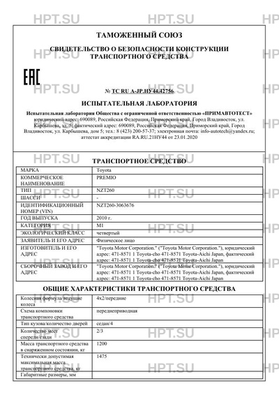 | Тип ТС | NZT260 |