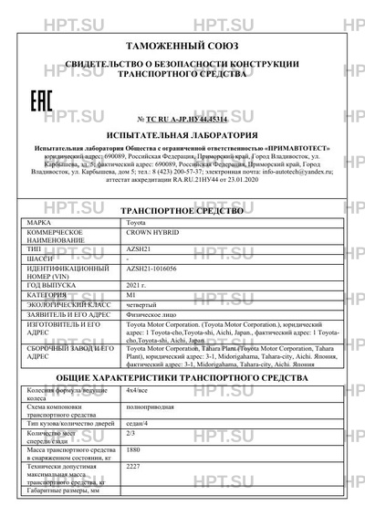 | ДВС | TOYOTA, A25A, четырехтактный, бензиновый |