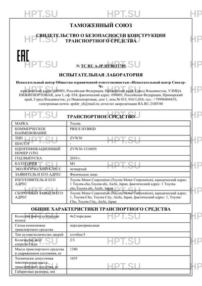 | Коммерческое наименование | PRIUS HYBRID |