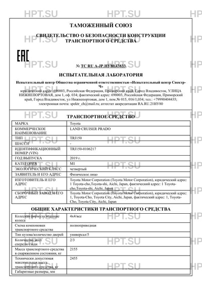 | Коммерческое наименование | LAND CRUISER PRADO |