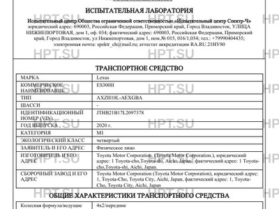 Предприятие-изготовитель Toyota Motor Corporation. (Toyota Motor Corporation.), юридический адрес: 1 Toyota-cho,Toyota-shi, Aichi, Japan., фактический адрес: 1 Toyota- cho,Toyota-shi, Aichi, Japan.
