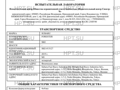 | Предприятие-изготовитель | Subaru-Fuji Heavy Industries ltd. (Subaru-Fuji Heavy Industries ltd.), юридический адрес: 1-7-2, Nishi-Shinjuku, Shinjuku-ku, Tokyo, Япония, фактический адрес: 1-7-2, Nishi-Shinjuku, Shinjuku-ku, Tokyo, Япония |