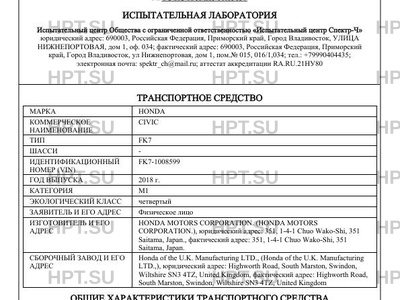| Предприятие-изготовитель | HONDA MOTORS CORPORATION. (HONDA MOTORS CORPORATION.), юридический адрес: 351, 1-4-1 Chuo Wako-Shi, 351 Saitama, Japan., фактический адрес: 351, 1-4-1 Chuo Wako-Shi, 351 Saitama, Japan. |