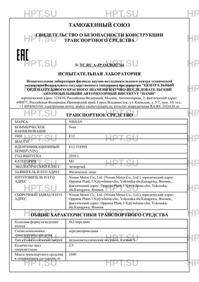 Марка ТС NISSAN