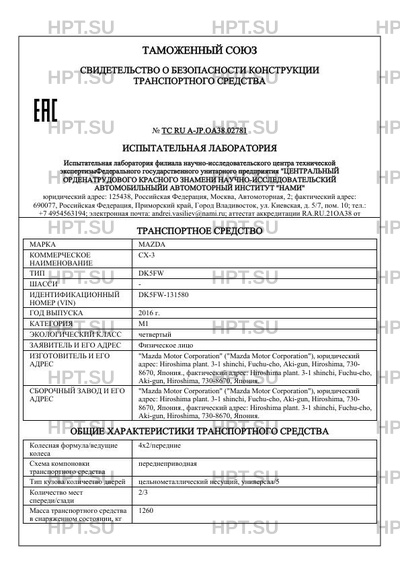 | Предприятие-изготовитель | "Mazda Motor Corporation" ("Mazda Motor Corporation"), юридический адрес: Hiroshima plant. 3-1 shinchi, Fuchu-cho, Aki-gun, Hiroshima, 730- 8670, Япония., фактический адрес: Hiroshima plant. 3-1 shinchi, Fuchu-cho, Aki-gun, Hiroshima, 730-8670, Япония. |