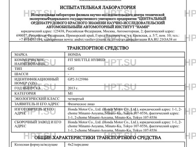 | Коммерческое наименование | FIT SHUTTLE HYBRID |