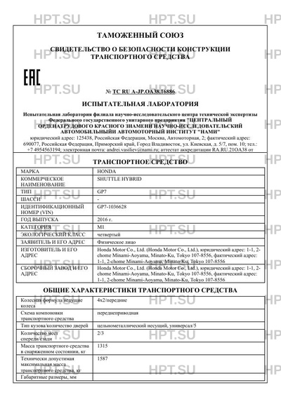 Предприятие-изготовитель Honda Motor Co., Ltd. (Honda Motor Co., Ltd.), юридический адрес: 1-1, 2- chome Minami-Aoyama, Minato-Ku, Tokyo 107-8556, фактический адрес: 1-1, 2-chome Minami-Aoyama, Minato-Ku, Tokyo 107-8556