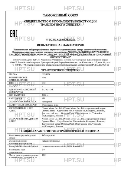| Номер документа | ТС RU А-JP.ОА38.19352 |