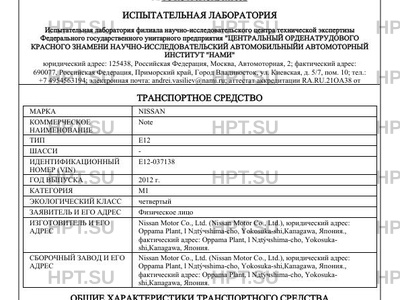 | Орган по сертификации | ИЛ НИ ЦТЭ ФГУП "НАМИ" |