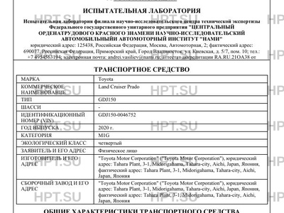 | Предприятие-изготовитель | "Toyota Motor Corporation" ("Toyota Motor Corporation"), юридический адрес: Tahara Plant, 3-1, Midorigahama, Tahara-city, Aichi, Japan, Япония, фактический адрес: Tahara Plant, 3-1, Midorigahama, Tahara-city, Aichi, Japan, Япония |