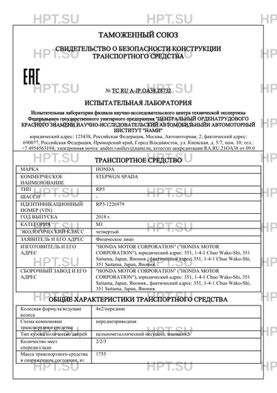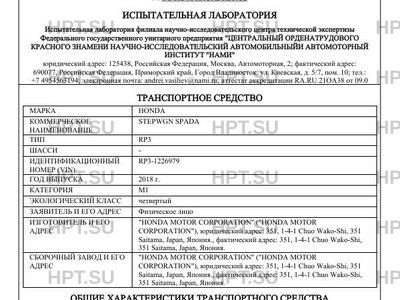 | Предприятие-изготовитель | "HONDA MOTOR CORPORATION" ("HONDA MOTOR CORPORATION"), юридический адрес: 351, 1-4-1 Chuo Wako-Shi, 351 Saitama, Japan, Япония., фактический адрес: 351, 1-4-1 Chuo Wako-Shi, 351 Saitama, Japan, Япония. |
