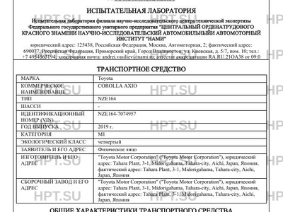 | Предприятие-изготовитель | "Toyota Motor Corporation" ("Toyota Motor Corporation"), юридический адрес: Tahara Plant, 3-1, Midorigahama, Tahara-city, Aichi, Japan, Япония, фактический адрес: Tahara Plant, 3-1, Midorigahama, Tahara-city, Aichi, Japan, Япония |