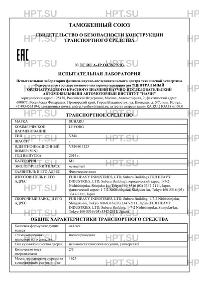 | Предприятие-изготовитель | FUJI HEAVY INDUSTRIES, LTD, Subaru Building (FUJI HEAVY INDUSTRIES, LTD, Subaru Building), юридический адрес: 1-7-2 Nishishinjuku, Shinjuku-ku, Tokyo 160-8316 (03) 3347-2111, Japan, фактический адрес: 1-7-2 Nishishinjuku, Shinjuku-ku, Tokyo 160-8316 (03) 3347-2111, Japan |