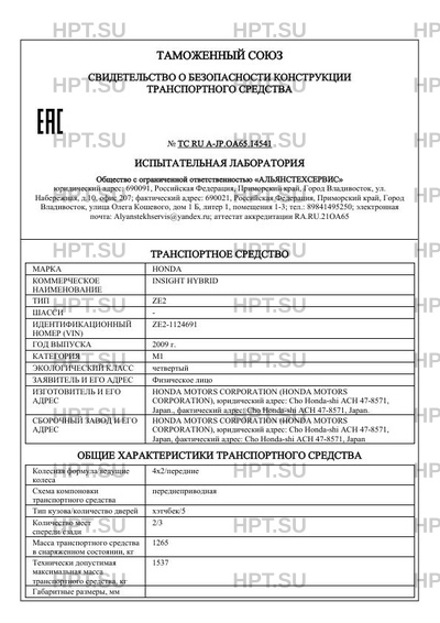 | Марка ТС | HONDA |