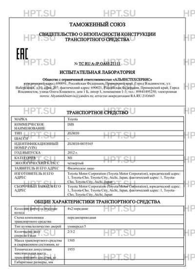 | Номер документа | ТС RU А-JP.ОА65.21111 |