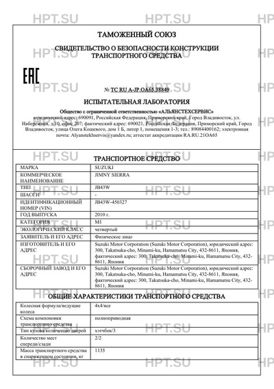Предприятие-изготовитель Suzuki Motor Corporation (Suzuki Motor Corporation), юридический адрес: 300, Takatsuka-cho, Minami-ku, Hamamatsu City, 432-8611, Япония, фактический адрес: 300, Takatsuka-cho, Minami-ku, Hamamatsu City, 432- 8611, Япония