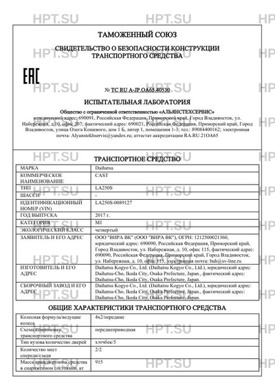 Полное СБКТС ТС RU A-JP.ОА65.40530