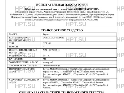 Предприятие-изготовитель Toyota Motor Corporation. (Toyota Motor Corporation.), юридический адрес: 471-8571, 1 Toyota-cho, 471-8571 Toyota-Aichi, Япония., фактический адрес: 471-8571, 1 Toyota-cho, 471-8571 Toyota-Aichi, Япония.