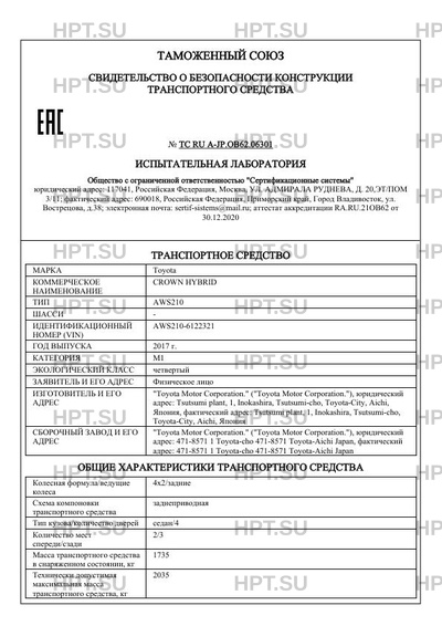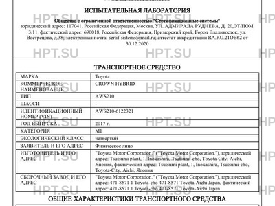 Предприятие-изготовитель "Toyota Motor Corporation." ("Toyota Motor Corporation."), юридический адрес: Tsutsumi plant, 1, Inokashira, Tsutsumi-cho, Toyota-City, Aichi, Япония, фактический адрес: Tsutsumi plant, 1, Inokashira, Tsutsumi-cho, Toyota-City, Aichi, Япония