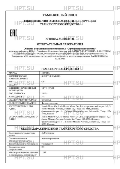 Предприятие-изготовитель Honda Motor Co., Ltd. (Honda Motor Co., Ltd.), юридический адрес: 1-1, 2- chome Minami-Aoyama, Minato-Ku, Tokyo 107-8556, Япония, фактический адрес: 1-1, 2-chome Minami-Aoyama, Minato-Ku, Tokyo 107- 8556, Япония