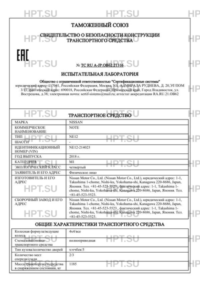 | Предприятие-изготовитель | Nissan Motor Co., Ltd. (Nissan Motor Co., Ltd.), юридический адрес: 1-1, Takashima 1-chome, Nishi-ku, Yokohama-shi, Kanagawa 220-8686, Japan, Япония. Тел. +81-45-523-5523., фактический адрес: 1-1, Takashima 1- chome, Nishi-ku, Yokohama-shi, Kanagawa 220-8686, Japan, Япония. Тел. +81-45-523-5523. |