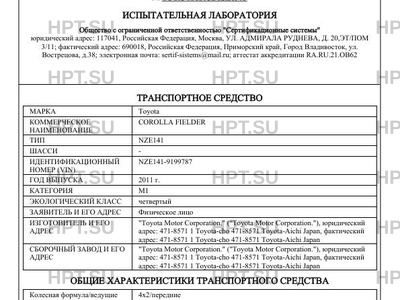 | Предприятие-изготовитель | "Toyota Motor Corporation." ("Toyota Motor Corporation."), юридический адрес: 471-8571 1 Toyota-cho 471-8571 Toyota-Aichi Japan, фактический адрес: 471-8571 1 Toyota-cho 471-8571 Toyota-Aichi Japan |