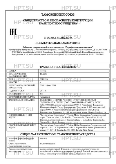 | Предприятие-изготовитель | "Toyota Motor Corporation." ("Toyota Motor Corporation."), юридический адрес: Tsutsumi plant, 1, Inokashira, Tsutsumi-cho, Toyota-City, Aichi, Япония, фактический адрес: Tsutsumi plant, 1, Inokashira, Tsutsumi-cho, Toyota-City, Aichi, Япония |