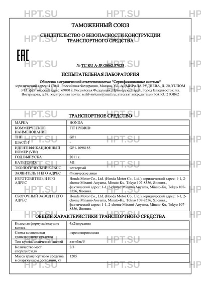 | Номер документа | ТС RU А-JP.ОВ62.37023 |