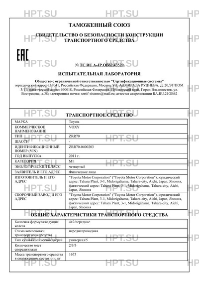 | Номер документа | ТС RU А-JP.ОВ62.43529 |