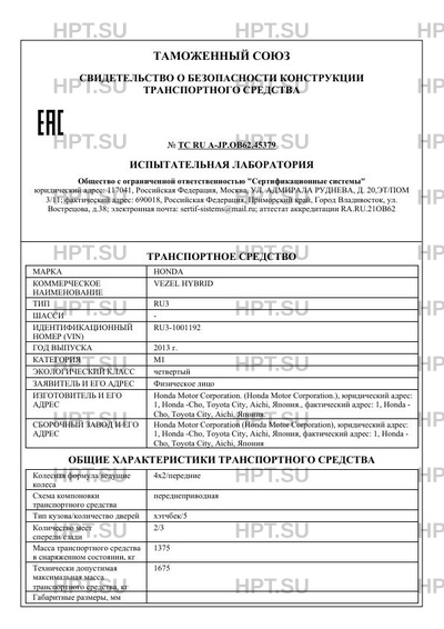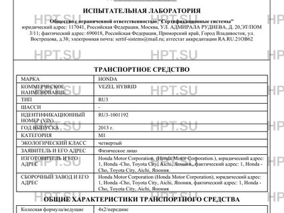 | Коммерческое наименование | VEZEL HYBRID |