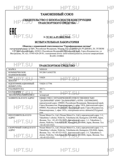 | Номер документа | ТС RU А-JP.ОВ62.70445 |