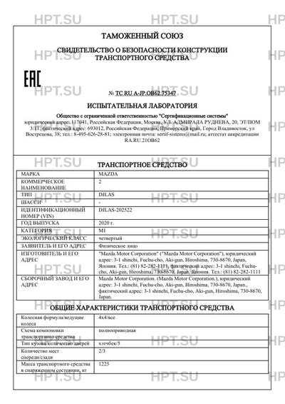 | Номер документа | ТС RU А-JP.ОВ62.75347 |