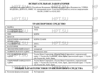 Предприятие-изготовитель Toyota Motor Corporation. (Toyota Motor Corporation.), юридический адрес: 1 Toyota-cho,Toyota-shi, Aichi, Japan., фактический адрес: 1 Toyota- cho,Toyota-shi, Aichi, Japan.