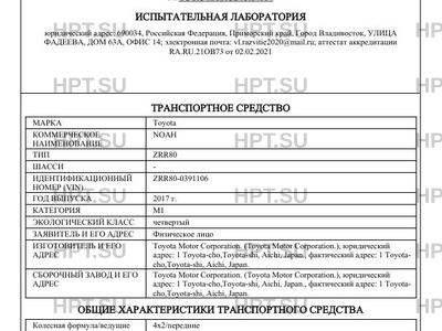 Предприятие-изготовитель Toyota Motor Corporation. (Toyota Motor Corporation.), юридический адрес: 1 Toyota-cho,Toyota-shi, Aichi, Japan., фактический адрес: 1 Toyota- cho,Toyota-shi, Aichi, Japan.