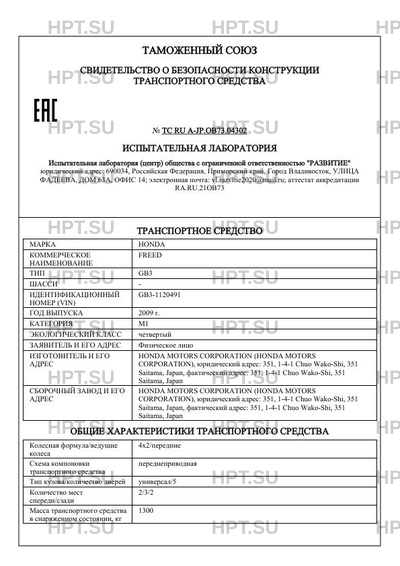 | Предприятие-изготовитель | HONDA MOTORS CORPORATION (HONDA MOTORS CORPORATION), юридический адрес: 351, 1-4-1 Chuo Wako-Shi, 351 Saitama, Japan, фактический адрес: 351, 1-4-1 Chuo Wako-Shi, 351 Saitama, Japan |