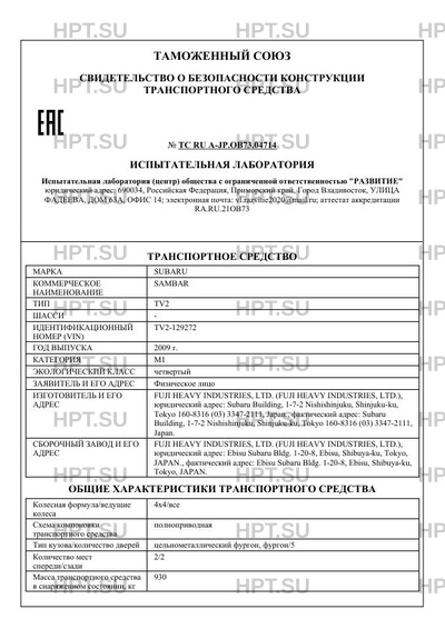 Предприятие-изготовитель FUJI HEAVY INDUSTRIES, LTD. (FUJI HEAVY INDUSTRIES, LTD.), юридический адрес: Subaru Building, 1-7-2 Nishishinjuku, Shinjuku-ku, Tokyo 160-8316 (03) 3347-2111, Japan., фактический адрес: Subaru Building, 1-7-2 Nishishinjuku, Shinjuku-ku, Tokyo 160-8316 (03) 3347-2111, Japan.