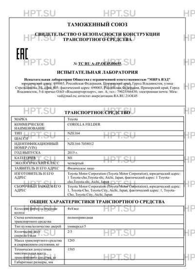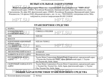 Предприятие-изготовитель Toyota Motor Corporation (Toyota Motor Corporation), юридический адрес: 1 Toyota-cho,Toyota-shi, Aichi, Japan, фактический адрес: 1 Toyota- cho,Toyota-shi, Aichi, Japan