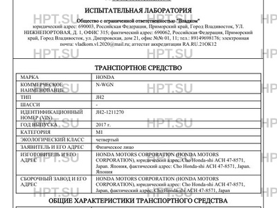 Предприятие-изготовитель HONDA MOTORS CORPORATION