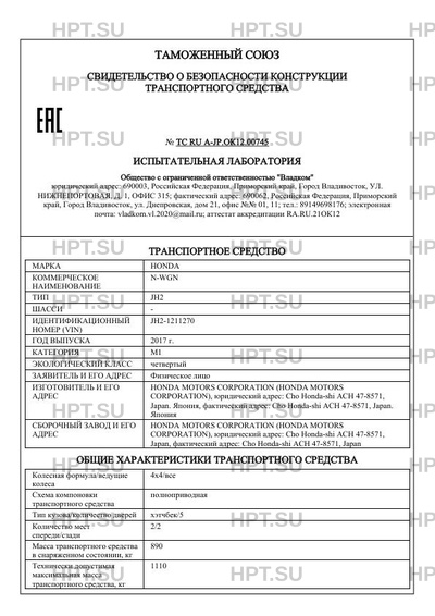 Полное СБКТС ТС RU A-JP.ОК12.00745