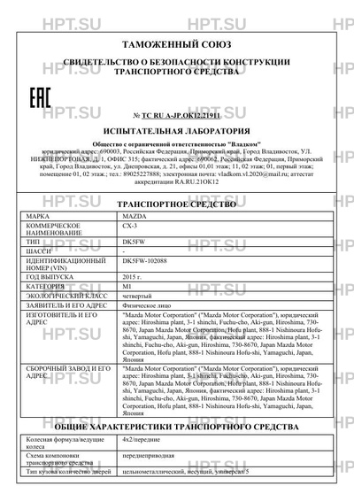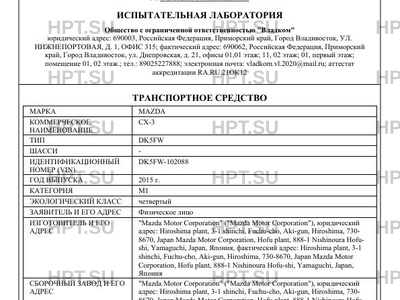 | Предприятие-изготовитель | "Mazda Motor Corporation" ("Mazda Motor Corporation"), юридический адрес: Hiroshima plant, 3-1 shinchi, Fuchu-cho, Aki-gun, Hiroshima, 730- 8670, Japan Mazda Motor Corporation, Hofu plant, 888-1 Nishinoura Hofu- shi, Yamaguchi, Japan, Япония, фактический адрес: Hiroshima plant, 3-1 shinchi, Fuchu-cho, Aki-gun, Hiroshima, 730-8670, Japan Mazda Motor Corporation, Hofu plant, 888-1 Nishinoura Hofu-shi, Yamaguchi, Japan, Япония |
