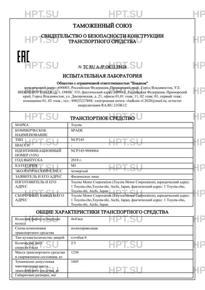 Предприятие-изготовитель Toyota Motor Corporation (Toyota Motor Corporation), юридический адрес: 1 Toyota-cho,Toyota-shi, Aichi, Japan, фактический адрес: 1 Toyota-cho, Toyota-shi, Aichi, Japan