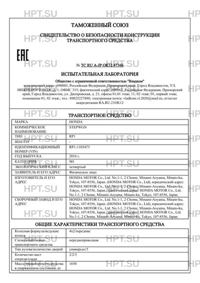 | Предприятие-изготовитель | HONDA MOTOR Co., Ltd. No.1-1, 2 Chome, Minami-Aoyama, Minato-ku, Tokyo, 107-8556, Japan. (HONDA MOTOR Co., Ltd), юридический адрес: HONDA MOTOR Co., Ltd. No.1-1, 2 Chome, Minami-Aoyama, Minato-ku, Tokyo, 107-8556, Japan., фактический адрес: HONDA MOTOR Co., Ltd. No.1-1, 2 Chome, Minami-Aoyama, Minato-ku, Tokyo, 107-8556, Japan. |