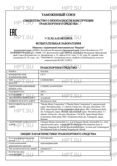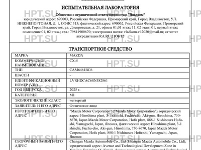 Предприятие-изготовитель "Mazda Motor Corporation" ("Mazda Motor Corporation"), юридический адрес: Hiroshima plant, 3-1 shinchi, Fuchu-cho, Aki-gun, Hiroshima, 730- 8670, Japan Mazda Motor Corporation, Hofu plant, 888-1 Nishinoura Hofu- shi, Yamaguchi, Japan, Япония, фактический адрес: Hiroshima plant, 3-1 shinchi, Fuchu-cho, Aki-gun, Hiroshima, 730-8670, Japan Mazda Motor Corporation, Hofu plant, 888-1 Nishinoura Hofu-shi, Yamaguchi, Japan, Япония